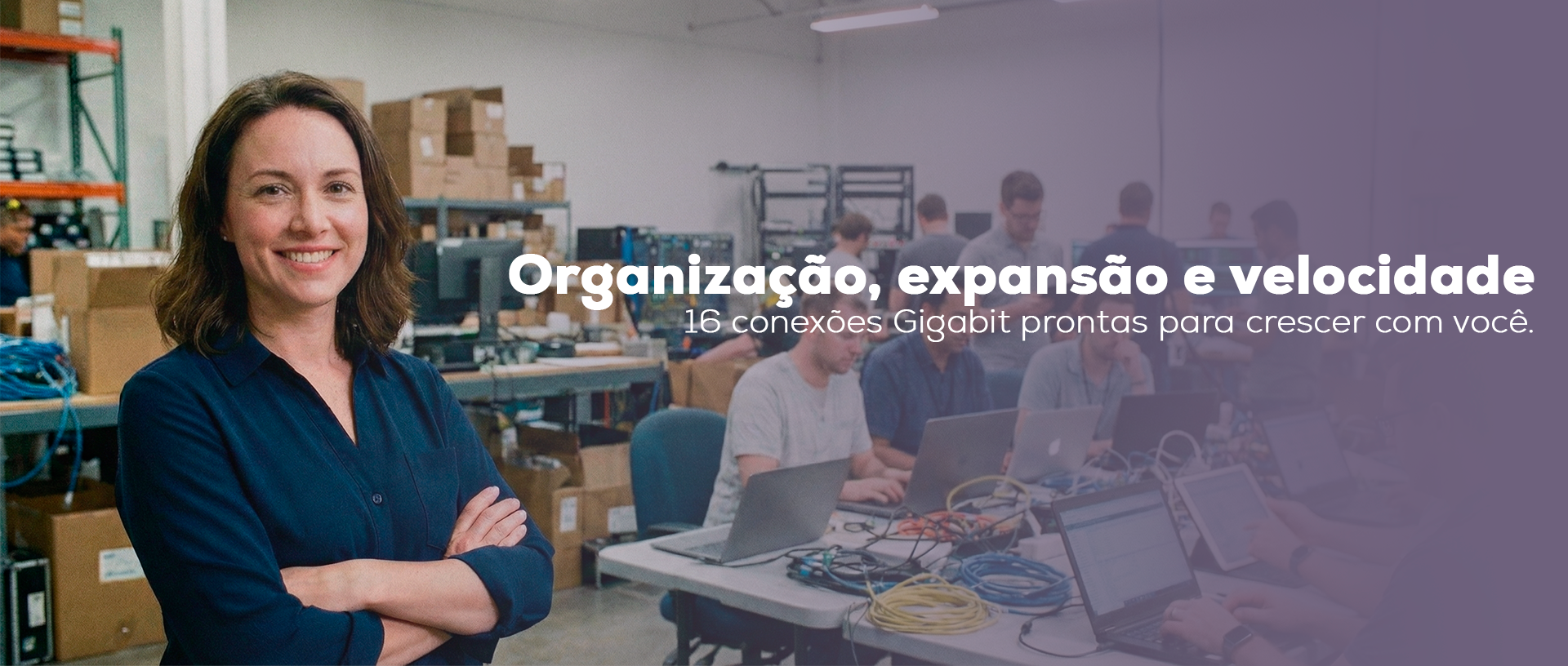 • 16 portas RJ45 Gigabit 10/100/1000 Mbps adaptativas