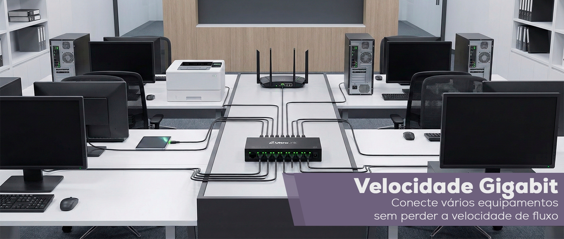 • 8 portas RJ45 Gigabit 10/100/1000 Mbps adaptativas