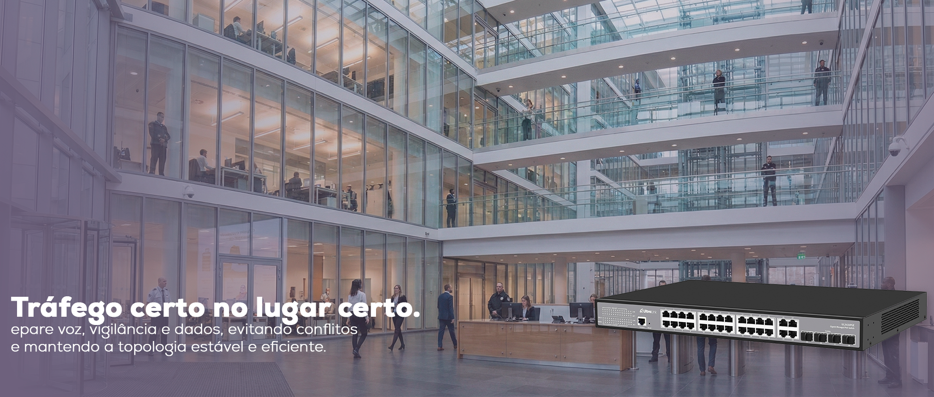 • Até 256 VLANs ativas, incluindo Voice VLAN, Protocol VLAN e Surveillance VLAN